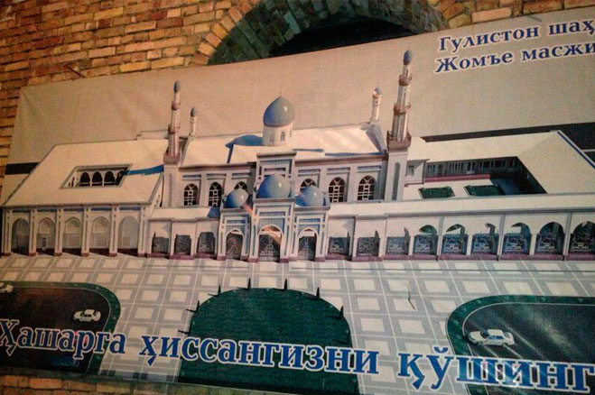 2014 йил 3 ноябрь куни шайх Муҳаммад Содиқ Муҳаммад Юсуф ҳазратлари Сирдарё вилоятига ташриф буюрдилар. Шайх Муҳаммад Содиқ Муҳаммад Юсуф ҳазратлари Гулистон шаҳрида қад кўтараётган жомеъ масжидига бориб, масжид қурилиши билан танишдилар. Шайх ҳазратлари қурилишда иштирок этаётган усталар, уларга бош-қош бўлаётган масжид аҳли билан суҳбатлашиб, бу азиз даргоҳнинг тез кунларда битиб, ишга тушишини, намозхонларга тўлиб, маънавий ва моддий обод бўлишини тилаб, хайрли дуолар қилдилар.