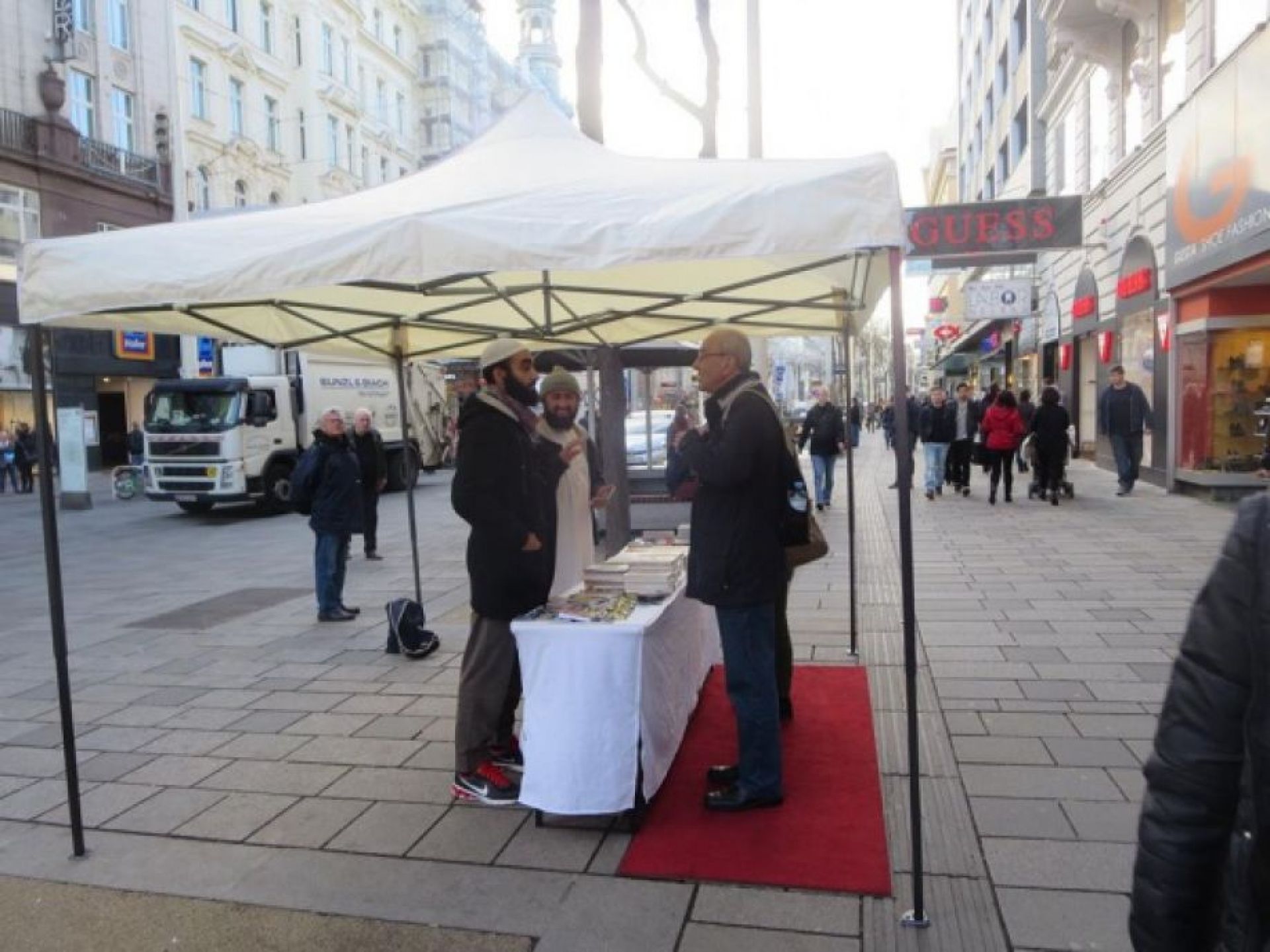 Бугун Вена шаҳрининг марказларидан бирида Қуръони карим китоблари текинга тарқатилди. Онлайн тизимда ҳам керакли маълумотлар тарқатилмоқда.