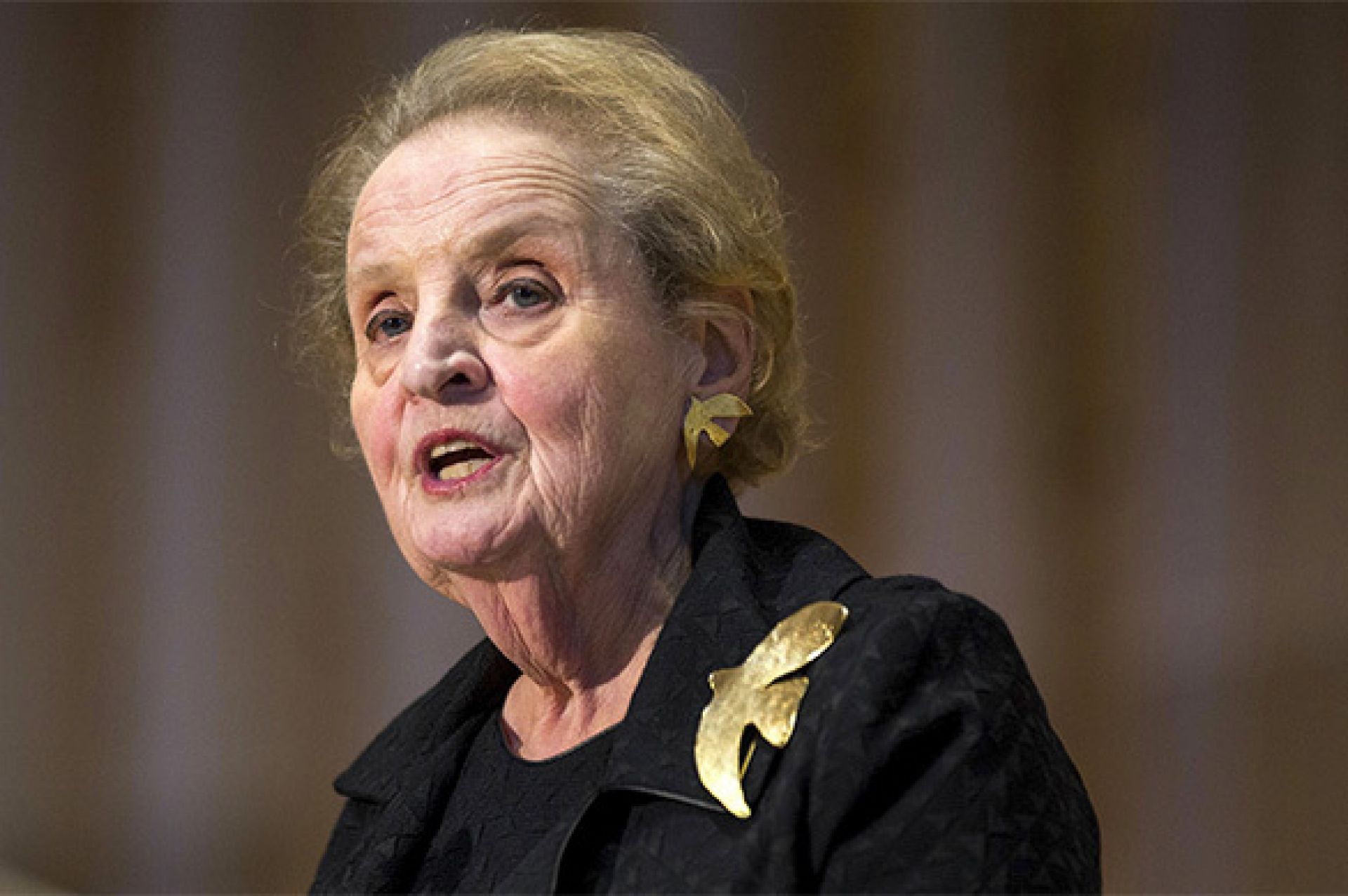 Хуш келибсиз муҳожирлар», деб қайд этган. Олбрайт ҳоним яна «Америка барча дин вакиллари учун очиқ бўлиши керак», дея такидлаган. Бу билан Американинг янги сайланган призиденти Доналд Трампнинг баъзи мусулмон давлатлардан муҳожирлар келишини тақиқлаб қўйиш сиёсатига эътироз билдирган.