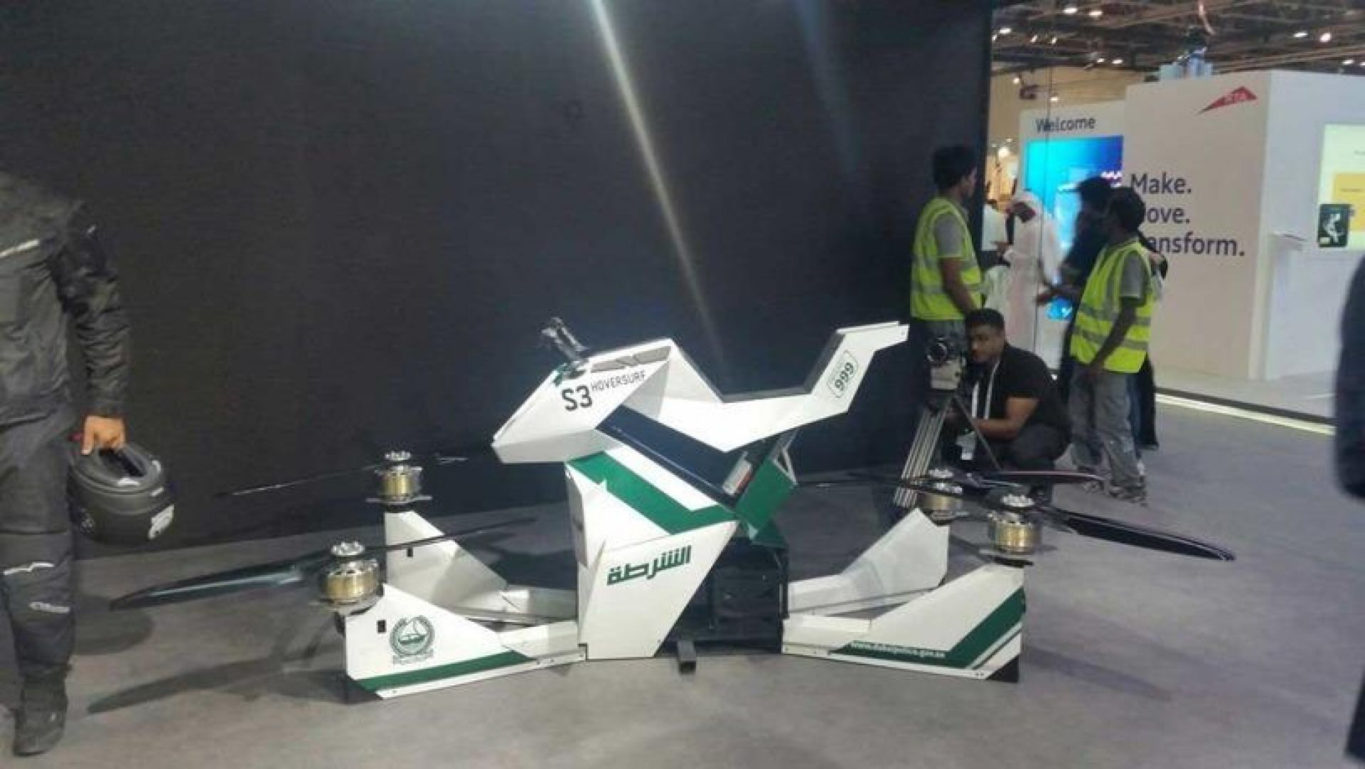 Амирликлар полицияси Gitex 2017 технологилар кўргазмасида учар мотоциклларни намойиш этди.