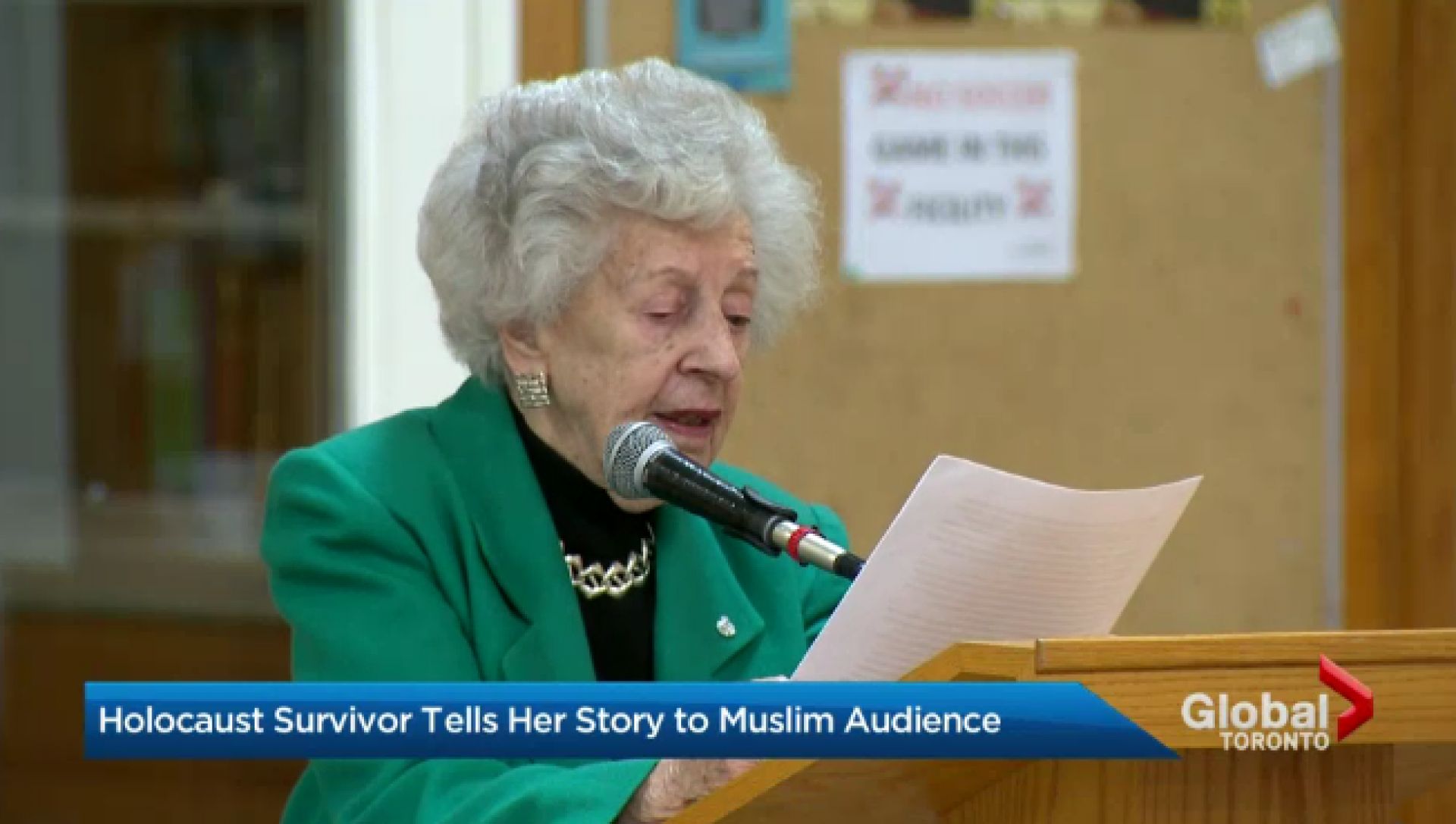 Холокостда омон колган кекса яҳудий аёл Герда Фрибергни Фалаҳ ислом марказининг рахбарияти масжид қавми олдида нутқ сўзлашга таклиф қилишга карор килди. Фриберг хонимдан Полшада яшаган пайтдаги содир бўлган мудҳиш воқеалар ҳақида гапириб беришни илтимос қилишди. У бу таклифга лаббай деб жавоб бериб, ўзи билан бирга роҳибни ҳам олиб келди. "Мен таклиф қилган хар бир ибодатхонага келганимда ўша жой нутқ сўзлаш учун муносиблигини хис қиламан, чунки фақат шундай ерда биз Яратганга яқин бўламиз", дейди у. Хозирги кунда бутун дунёда Исломга қарши харакат бўлаётган бир пайтда мусулмон етакчилари яхудийлар немис миллатчилари томонидан таъқиб этилганликлари ҳақида билиб олиш ўта муҳимлигини таъкидлаб ўтди. "Биз одамлар ўзларини ёвуз ниятларини амалга ошириш мақсадида қандай ишларга қўл урганликлари, бундай холатлар такрорланиб хар биримиз билан содир бўлиши мумкинлиги ҳақида билишимиз керак", дейди мусулмон фаоли Рохил Ризо.