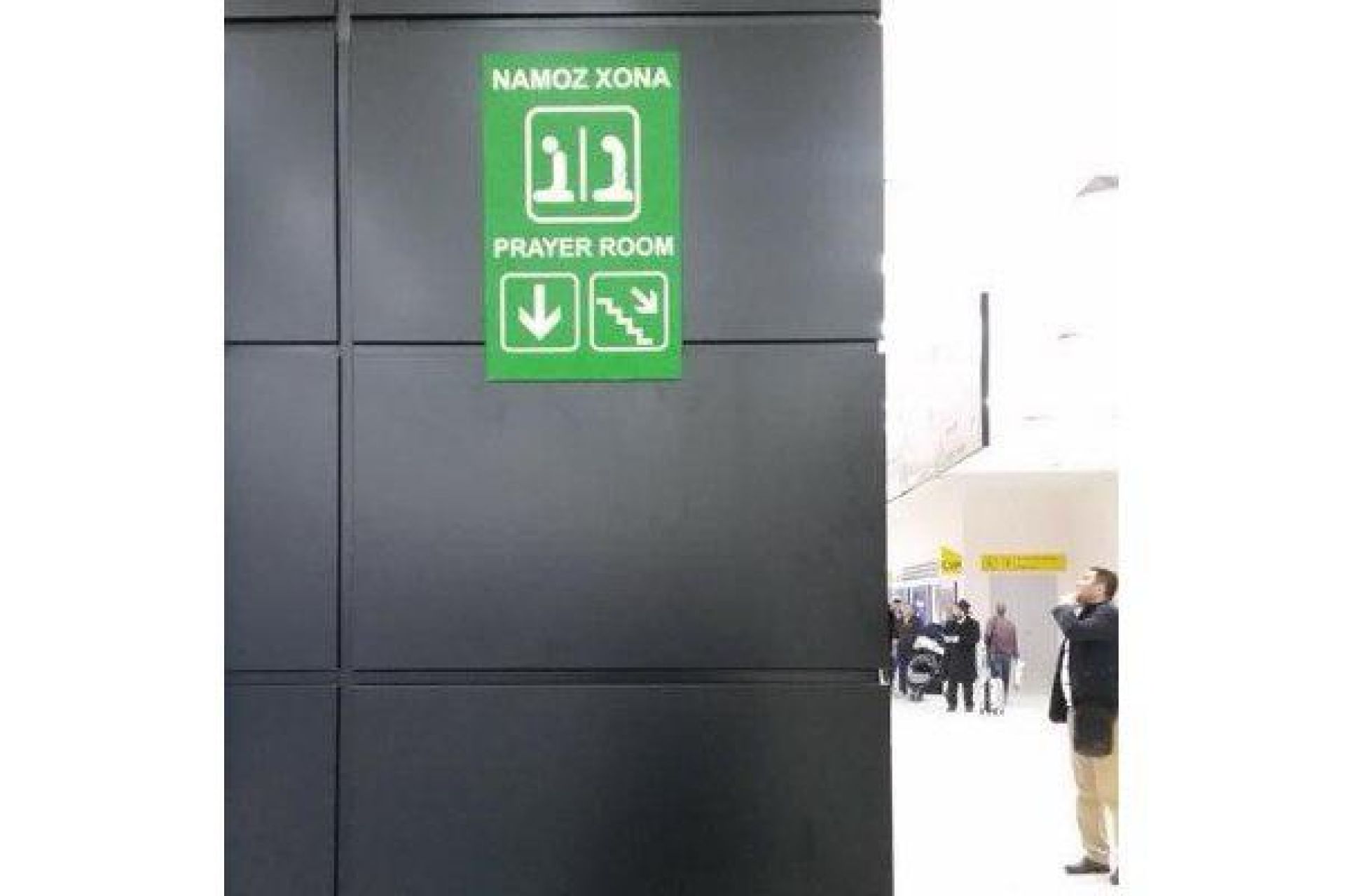 Терминалнинг Б8 бўлими яқинидаги бу мўъжаз масжиднинг ёнида таҳоратхона ҳам бор. Бундан буён чегара назоратидан ўтган йўловчилар намозларини мана шу масжидда ўқиб олишлари мумкин бўлди.
