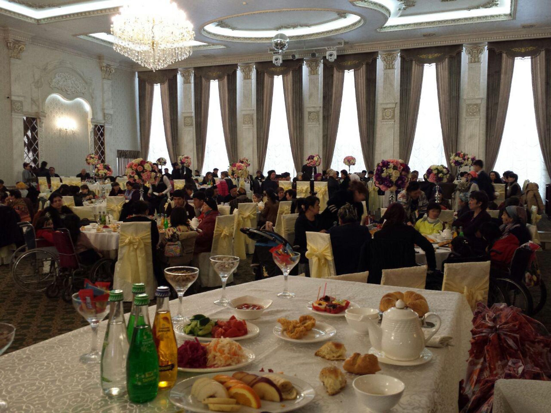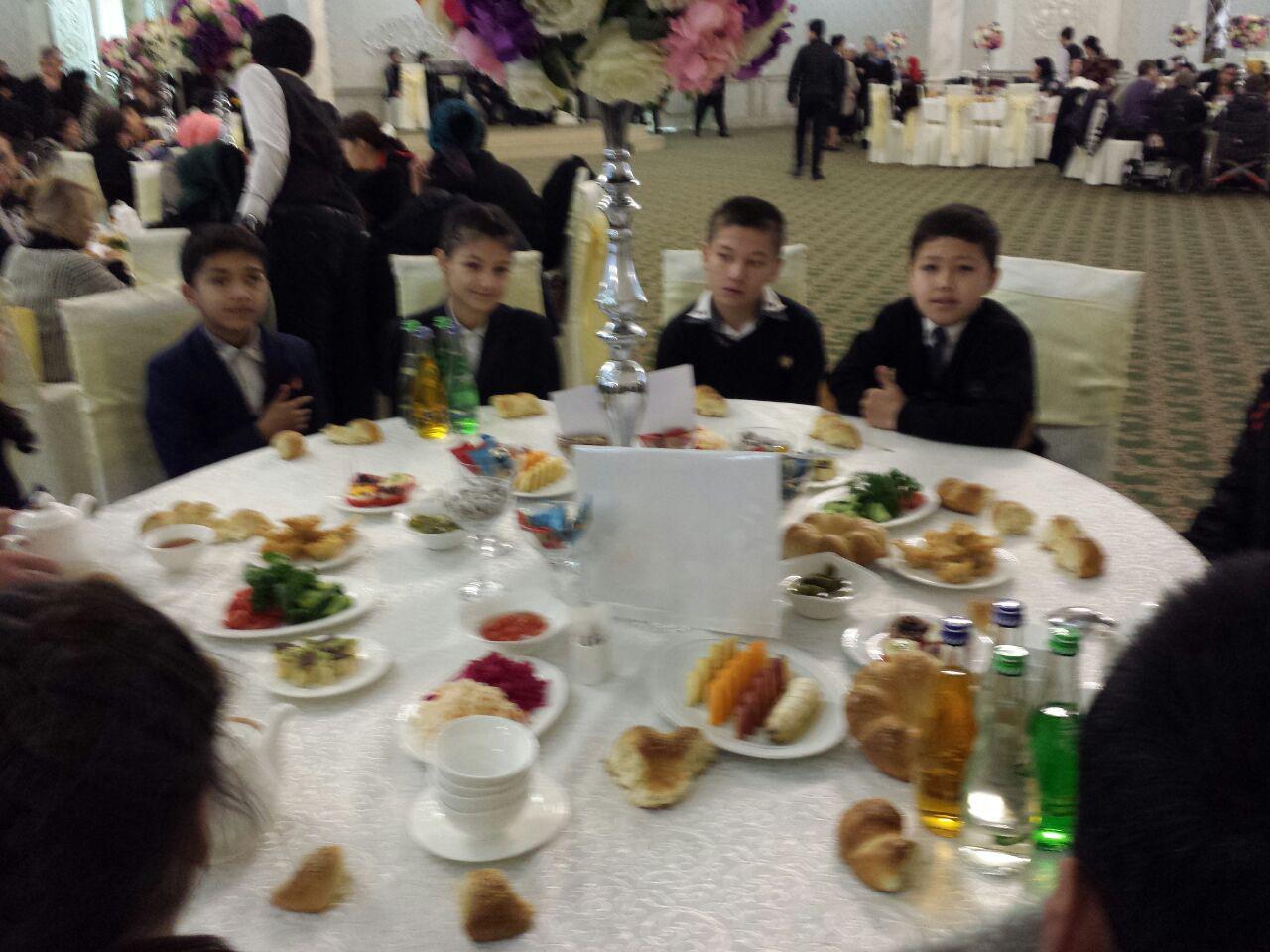 Ақийқа эҳсонига асосан пойтахт туманларида яшовчи имконияти чекланган, ногирон ва кам таъминланган фуқаролар билан бирга 100-интернат тарбияланувчилари ҳам келишди.