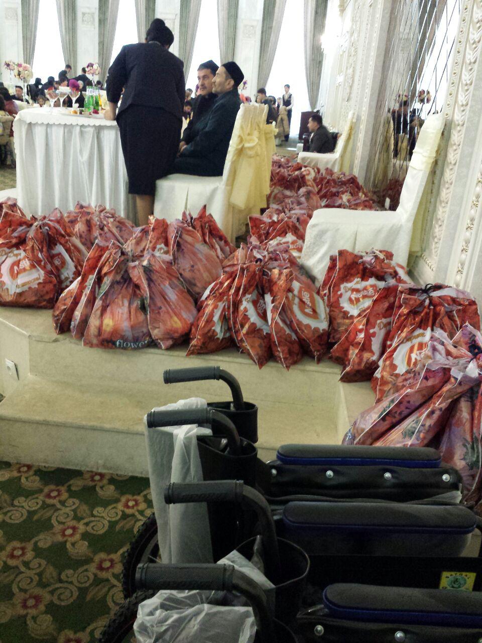 Ушбу эҳсонни уюштиришида Ҳотам акага Ўзбекистон Республикаси Ногиронлар жамиятининг Тошкент шаҳар бўлими мудираси Феруза Восиқова яқиндан ёрдам берди.